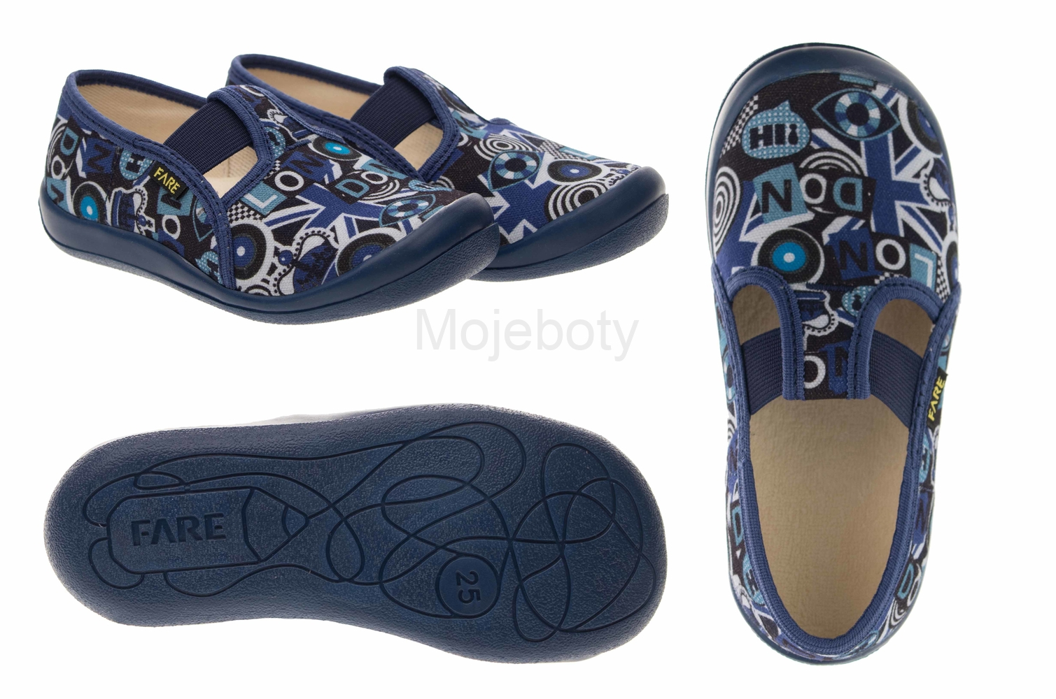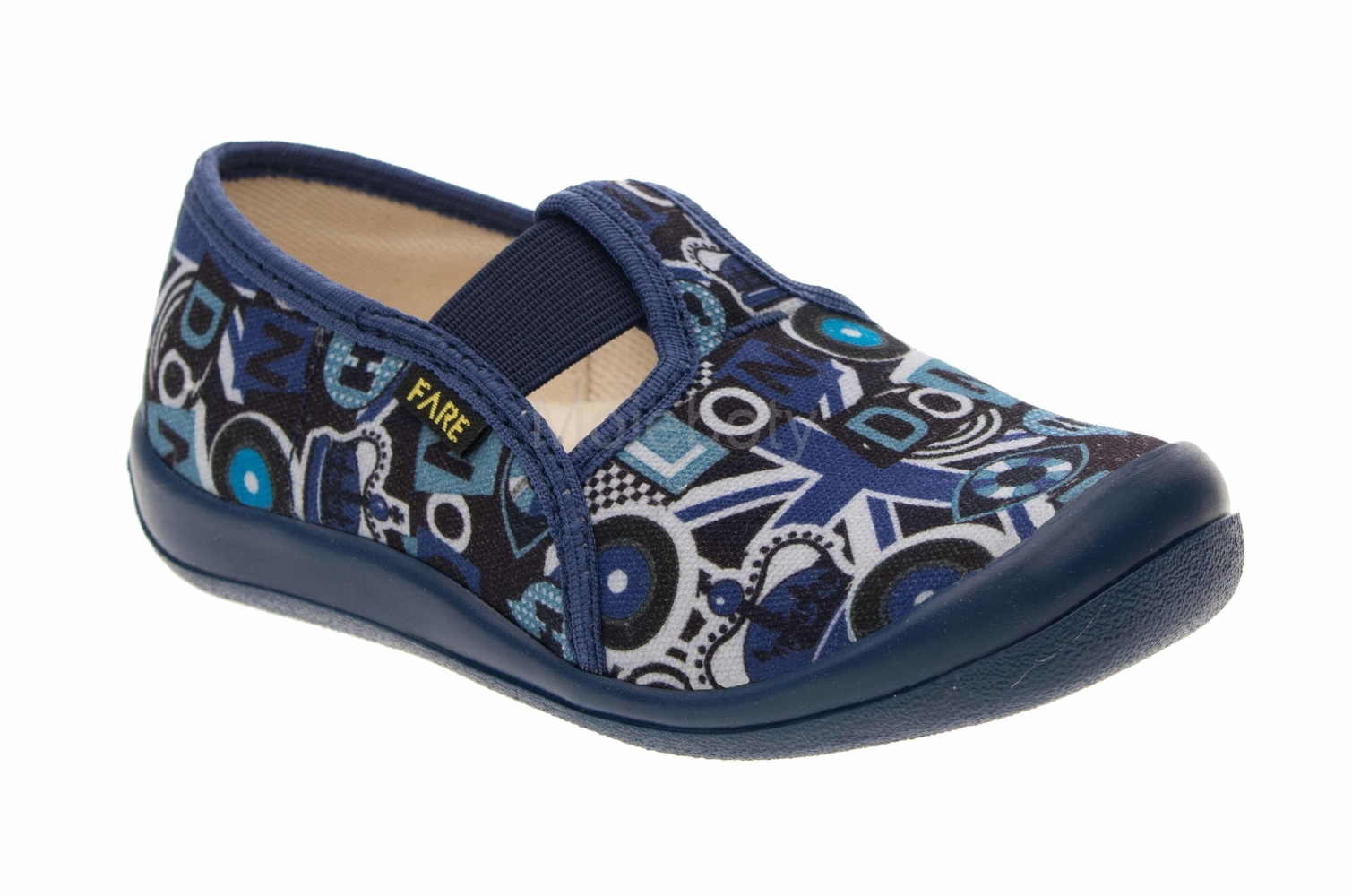 Přezůvková, nízká, textilní, lemovaná obuv, pruženkové uzavírání. Materiál svršku je z barevného pracího kordu, vnitřek je z bavlněného kepru. Podešev je vyvinuta jako odlehčená, materiál podešve z termoplastického elastomeru, je neklouzavá pro všechny běžně používané podlahoviny. Tato domácí a přezůvková obuv odpovídá ortopedickým požadavkům a zásadám zdravého obouvání. Obuv je v prstové části prostorově vytvarována, je vybavena pevným opatkem tak, jako je běžné u kvalitní celokožené obuvi. Vkládací stélka je vybavena komfortní tlumící vrstvou a klenkovou podporou. Obuv je designována v souladu nejmodernějšími módními trendy, včetně podešve, která chrání přední část před rychlým opotřebením.